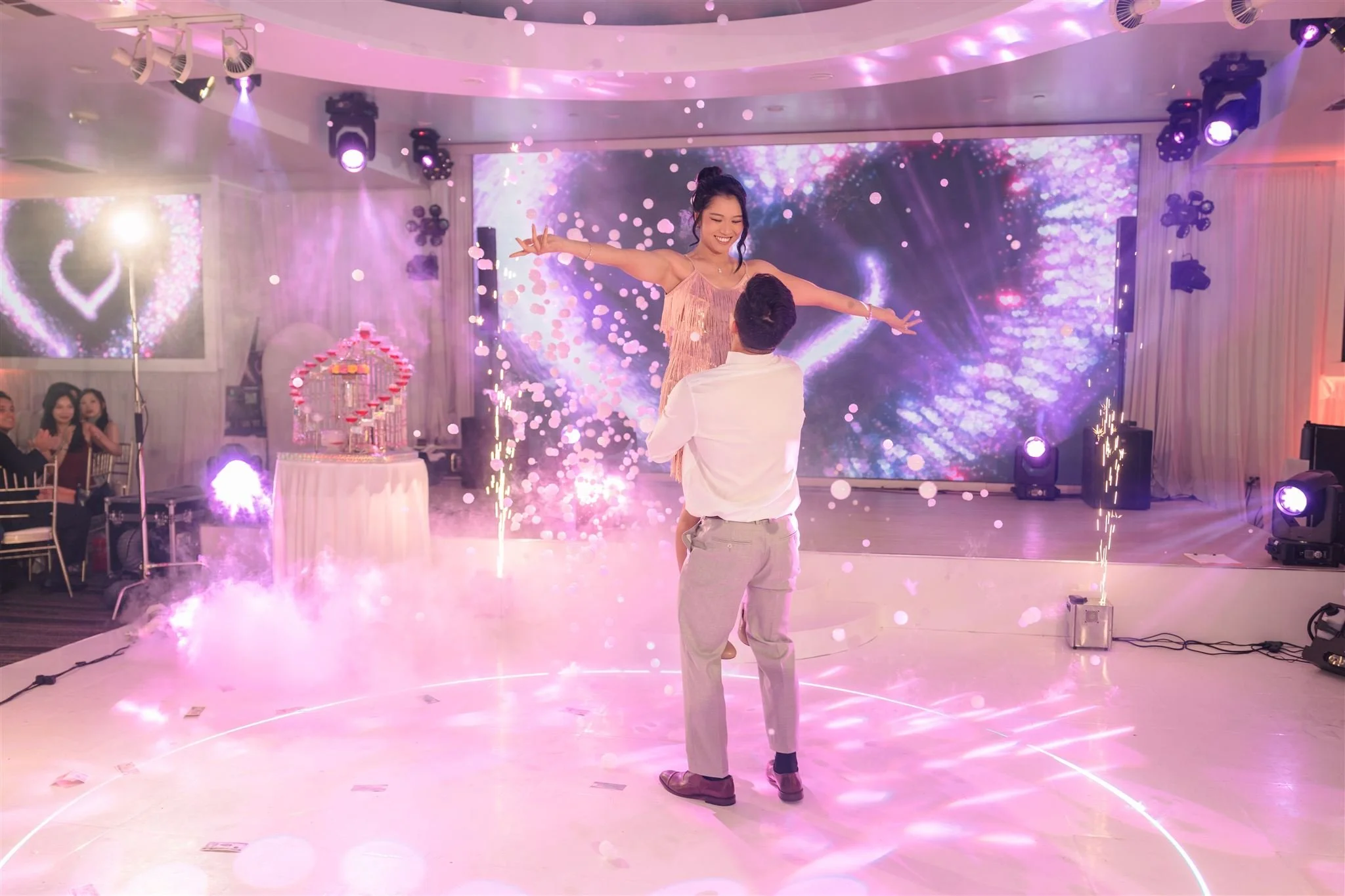 From heartfelt moments to high-energy celebrations, this reception at Diamond Seafood Palace 3 was filled with laughter, love, and unforgettable memories. Under elegant drapery and romantic lighting, family and friends danced the night away while honoring the couple’s joyful union. Every detail — from the floral arrangements to the grand performances — reflected a night of true celebration and connection.